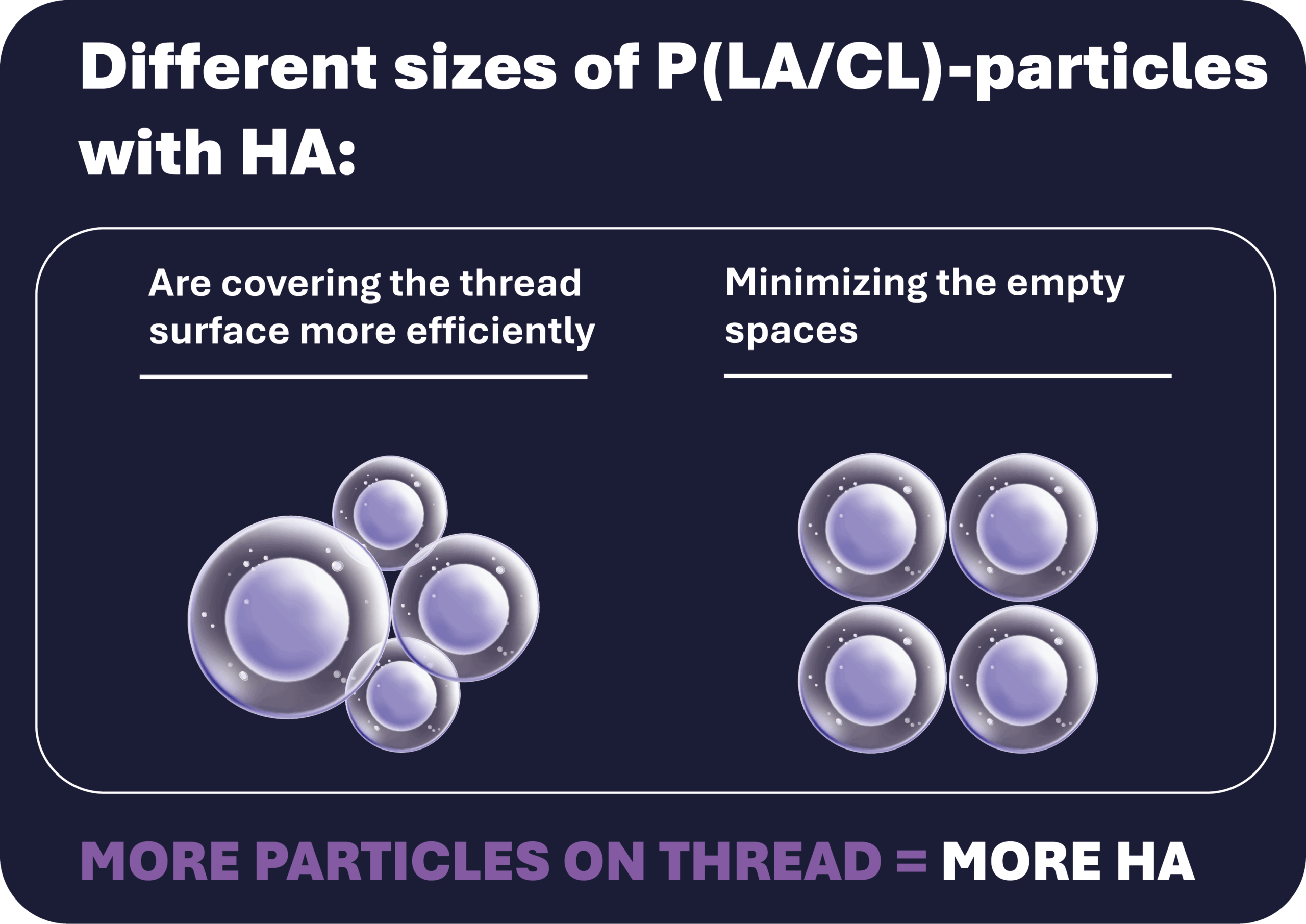 P(LA+CL)にサイズ違いの3種類のヒアルロン酸がコーティングされています。